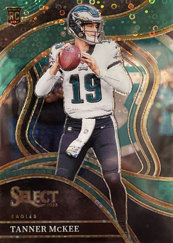 This card is 1 of 42 Tanner McKee's card variations in the 2023 Select set being tracked by Sports Card Investor, including Club Level, Club Level Black & Gold Die-Cut, Club Level Black & Green Die-Cut, Club Level Black & Red Die-Cut, and Club Level Disco.