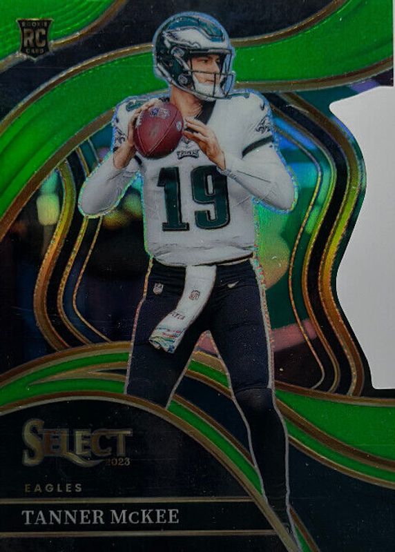 Tanner McKee Rookie /499 #218 2023 Panini Select Neon Green Prizm Die Cut Eagles