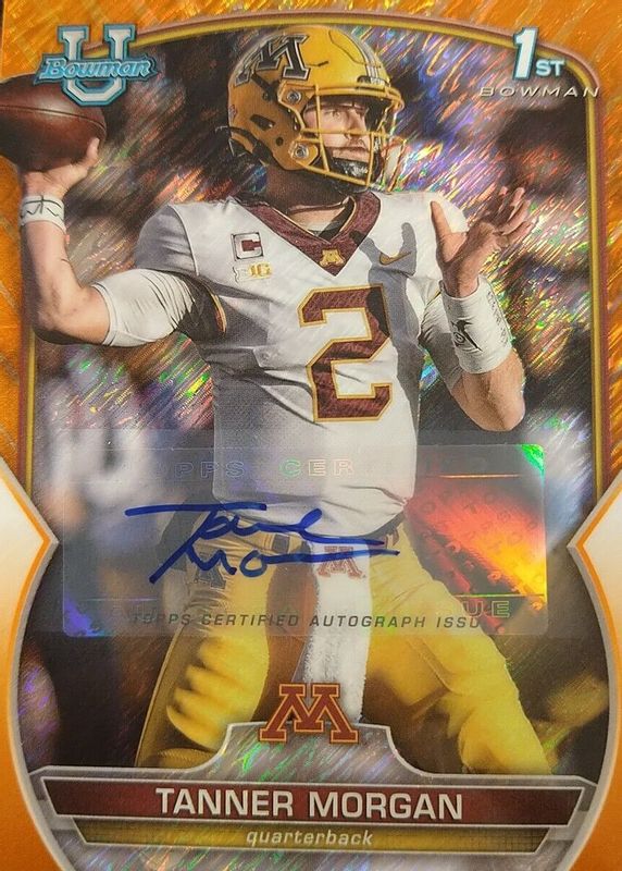 Tanner Morgan 2022 Bowman Chrome University #11 Prospect Auto - Orange Shimmer Refractor /25 (1st) RAW Price Guide