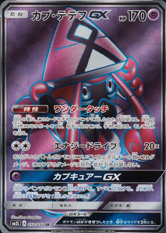 The Tapu Lele GX 2017 Japanese Sun & Moon: Alolan Moonlight #052/050 Super Rare (Full Art) card in Raw TCG (Near Mint) condition has not changed in price in the last 30 days.