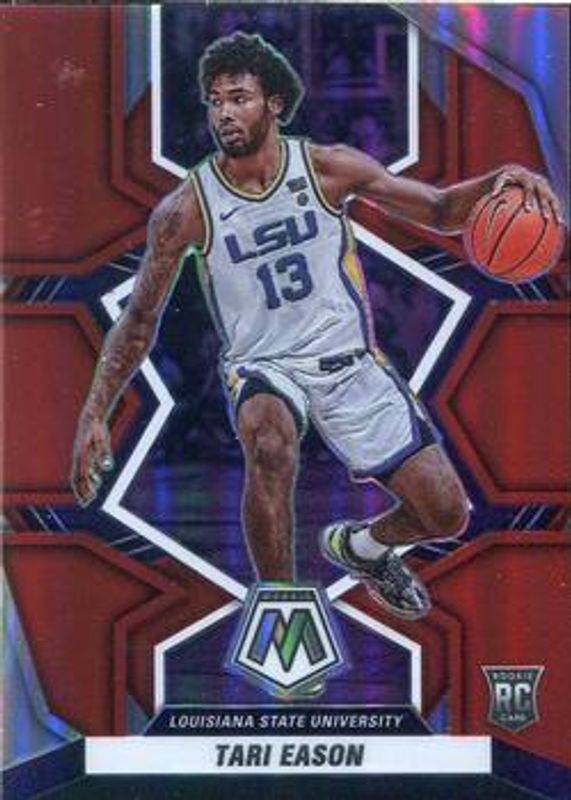The Tari Eason 2022 Chronicles Draft Picks #14 Mosaic - Red /149 Rookie card is 1 of 125 Tari Eason's card variations in the 2022 Chronicles Draft Picks set being tracked by Sports Card Investor, including Base, Black, Bronze, Pink, and Pulsar.