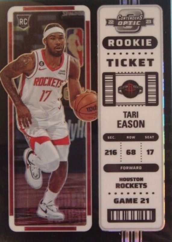 The Tari Eason 2022 Contenders Optic #10 Black Pandora /(SSP) Rookie card in Raw condition has not changed in price in the last 30 days and was last sold for $15.51 .