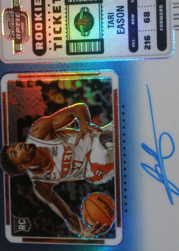 This card is 1 of 37 Tari Eason's card variations in the 2022 Contenders Optic set being tracked by Sports Card Investor, including Asia, Asia Red Wave, Red, Silver, and Blue /99.