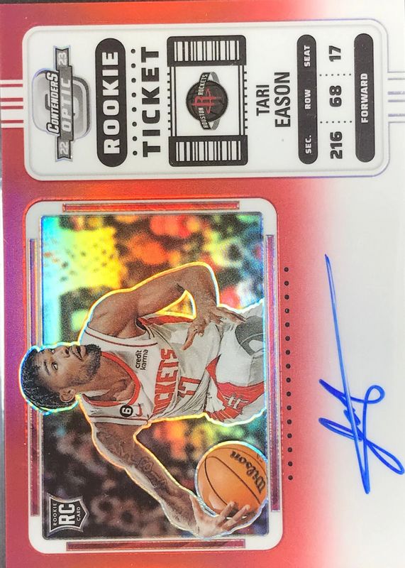 2022-23 Contenders Optic Tari Eason Variation Red Prizm Ticket Auto RC #68/99