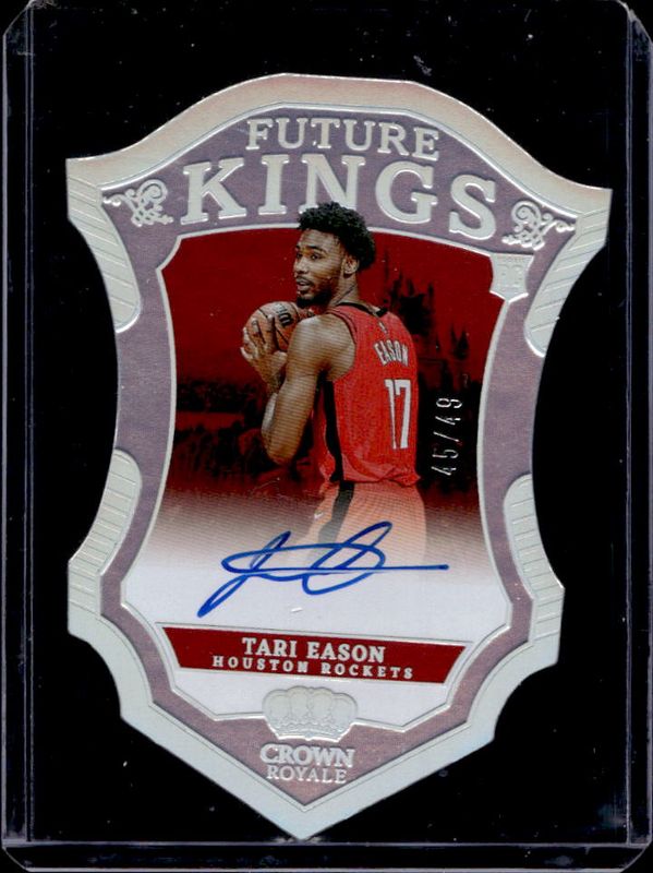 The Tari Eason 2022 Crown Royale #FKS-TES Future Kings Signatures /49 Rookie card is 1 of 33 Tari Eason's card variations in the 2022 Crown Royale set being tracked by Sports Card Investor, including Asia Red, Crystal, Blue Crystal /99, Pink Crystal /75, and Red Crystal /49.