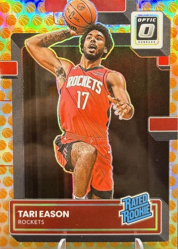 The Tari Eason 2022 Optic #203 Basketballs /(SSP) Rookie card in Raw condition has not changed in price in the last 30 days and was last sold for $5.50 .