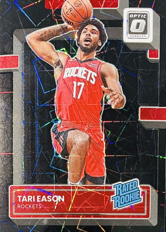 This card is 1 of 84 Tari Eason's card variations in the 2022 Optic set being tracked by Sports Card Investor, including Base, Checkerboard, Choice, Choice Red & Green, and Fast Break.