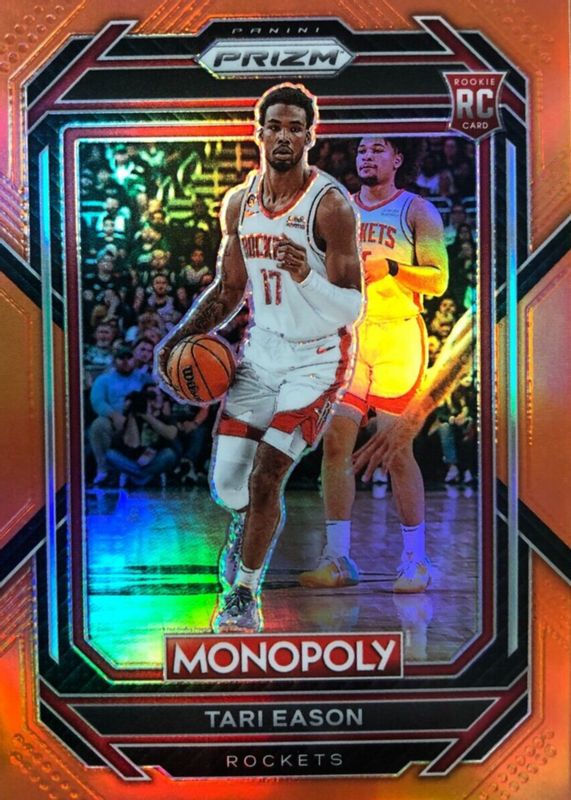 The Tari Eason 2022 Prizm Monopoly #33 Orange /124 Rookie card in Raw condition has not changed in price in the last 30 days and was last sold for $5.59 .