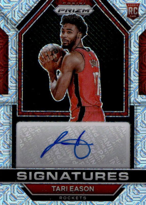 The Tari Eason 2022 Prizm #RSI-TES Rookie Signatures - Mojo /25 card in Raw condition has not changed in price in the last 30 days and was last sold for $120.50 .