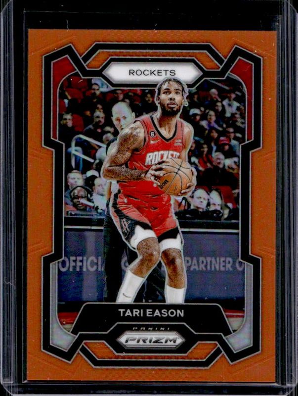 The Tari Eason 2023 Prizm #28 Orange /49 card is 1 of 66 Tari Eason's card variations in the 2023 Prizm set being tracked by Sports Card Investor, including Base, Blue Wave, Choice Blue Yellow Green, Fast Break, and Green.