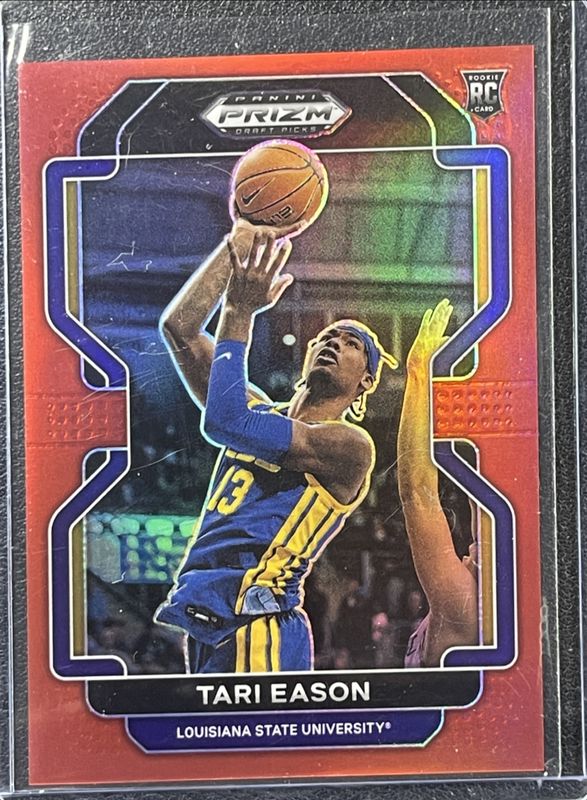 The Tari Eason 2023 Prizm #28 Red /299 card is 1 of 66 Tari Eason's card variations in the 2023 Prizm set being tracked by Sports Card Investor, including Base, Blue Wave, Choice Blue Yellow Green, Fast Break, and Green.