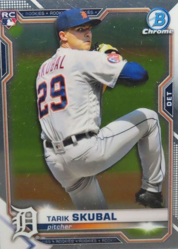 The Tarik Skubal 2021 Bowman Chrome #28 Base Rookie card in Raw condition has moved down -$2.13 (-40.6%) in the last 30 days and was last sold for $3.12 .