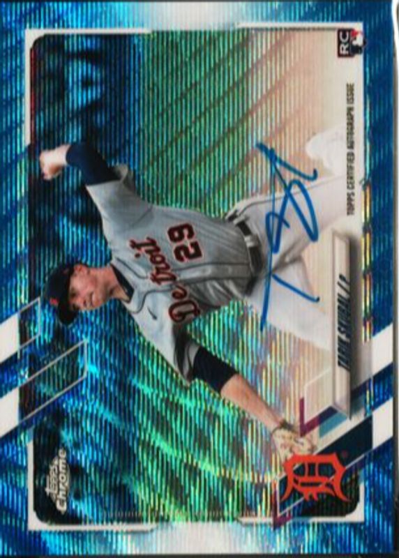 Cy Young winner Tarik Skubal 2021 Topps Chrome Rookie Auto Blue Wave /150