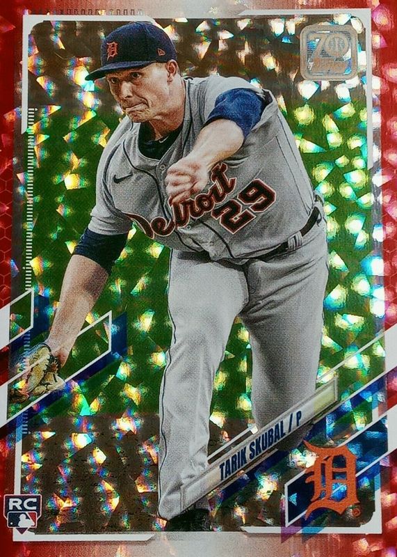 2021 Topps - Tarik Skubal #92 Vertical, Pitching (RC) Red Ice Foil /199