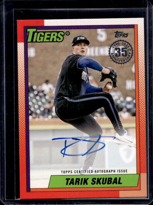 The Tarik Skubal 2025 Topps #90A-TS 1990 Baseball Autographs (Series 2) card is 1 of 184 Tarik Skubal's card variations in the 2025 Topps set being tracked by Sports Card Investor, including Base, Aqua Holo Foil, Diamante Foil, Holo Foil, and Pink Diamante Foil.