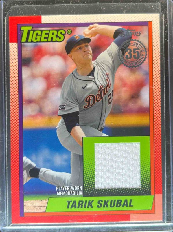The Tarik Skubal 2025 Topps #T90R-TRS 1990 Baseball Relics (Series 1) card is 1 of 184 Tarik Skubal's card variations in the 2025 Topps set being tracked by Sports Card Investor, including Base, Aqua Holo Foil, Diamante Foil, Holo Foil, and Pink Diamante Foil.