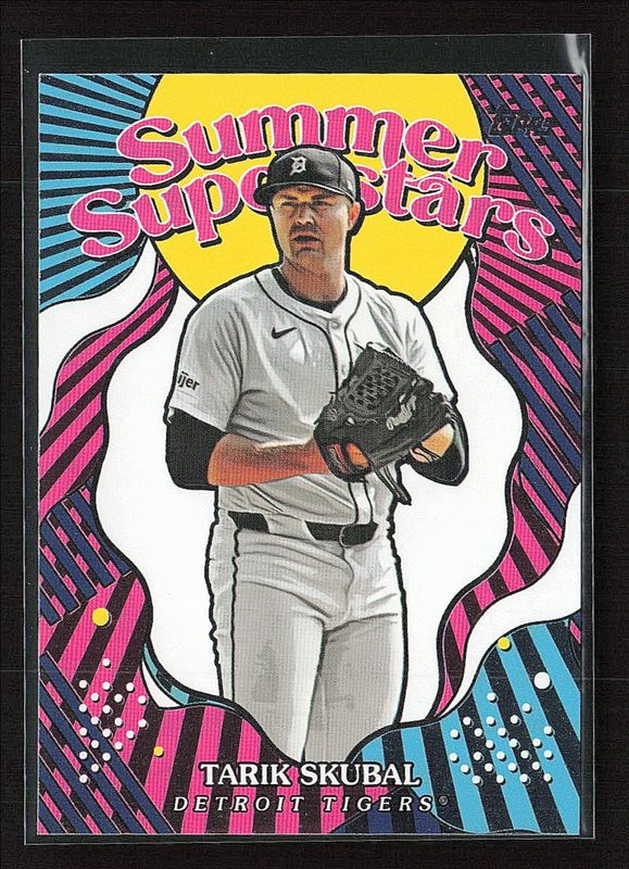 The Tarik Skubal 2025 Topps #SS-13 Summer Superstars card is 1 of 184 Tarik Skubal's card variations in the 2025 Topps set being tracked by Sports Card Investor, including Base, Aqua Holo Foil, Diamante Foil, Holo Foil, and Pink Diamante Foil.