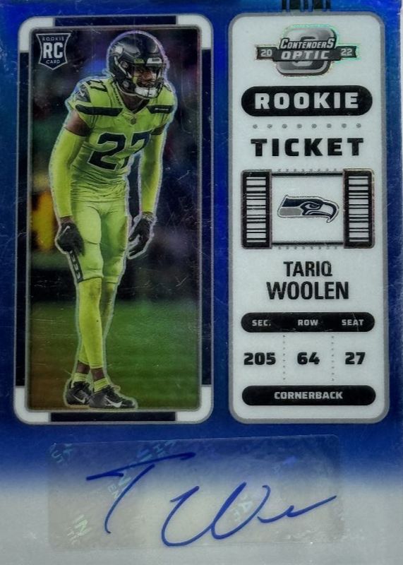 Tariq Woolen 2022 Contenders Optic #197 Rookie Ticket Auto - Blue /75 RAW Price Guide