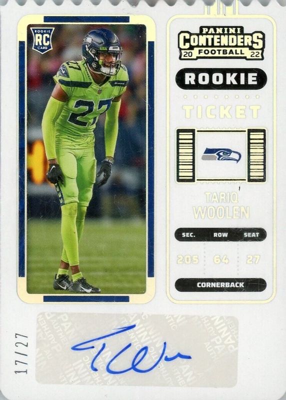 2022 Panini Contenders Rookie Ticket Tariq Woolen #223 Ticket Stub Auto /27 SSP