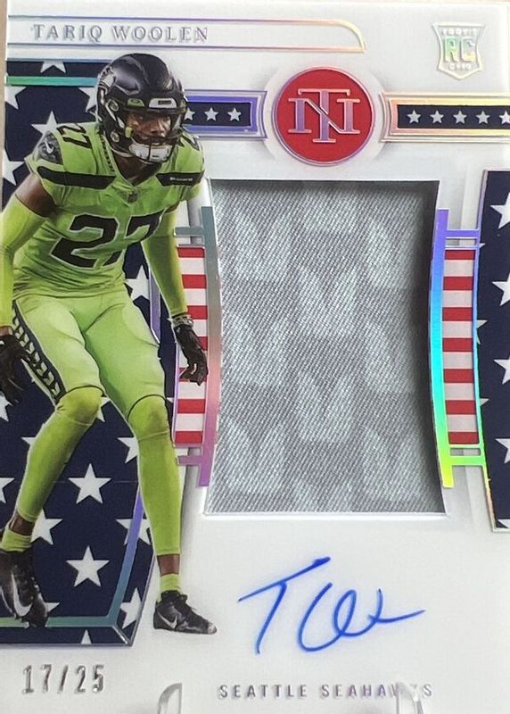 Auctions Ending Soon for Tariq Woolen 2022 National Treasures #196 Rookie Patch Auto - Stars & Stripes Holo Silver /25 RAW