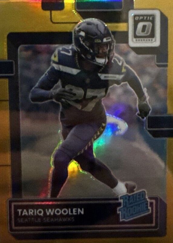 This card is 1 of 45 Tariq Woolen's card variations in the 2022 Optic set being tracked by Sports Card Investor, including Base, Holo, Holo Variation, Pink, and Purple Shock.