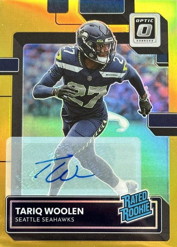 2022 DONRUSS OPTIC TARIQ WOOLEN RC RATED ROOKIE AUTO GOLD PRIZM /10 1st On Print