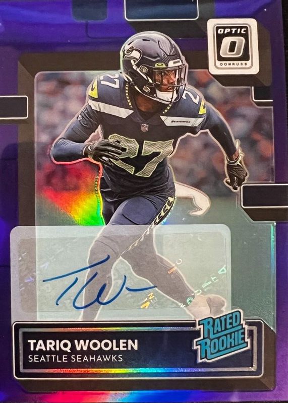 2022 Donruss Optic Tariq Woolen Purple Rated Rookie Auto #/35! Seattle Seahawks