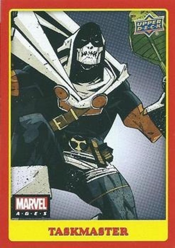The Taskmaster 2020 Upper Deck Marvel Ages #142 Base card is 1 of 4 Taskmaster's card variations in the 2020 Upper Deck Marvel Ages set being tracked by Sports Card Investor, including Mid Series Photo Variants, Flavorful, and Word Cloud.