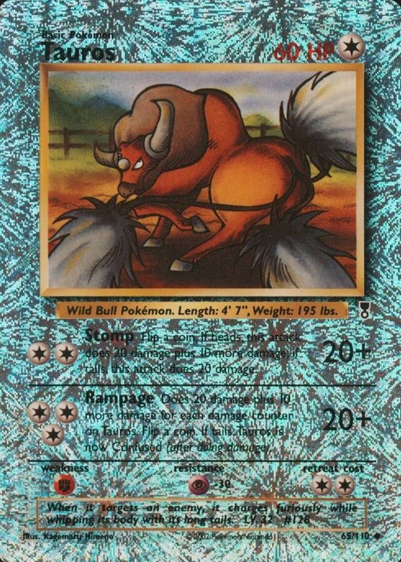 The Tauros 2002 Legendary Collection #65 Reverse Holo card in Raw TCG (Near Mint) condition has moved up $49.99 (+167%) in the last 30 days and was last sold for $79.99 .