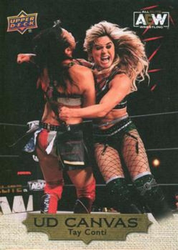The Tay Conti 2022 Upper Deck AEW #C3 UD Canvas Gold card is 1 of 35 Tay Conti's card variations in the 2022 Upper Deck AEW set being tracked by Sports Card Investor, including Base, Gold, Pyro, Silver Foil, and Green Pyro /399.