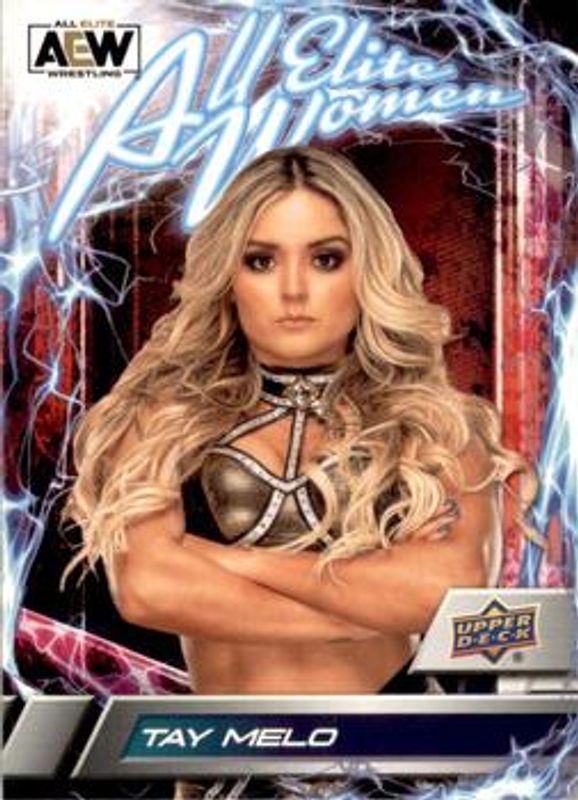 The Tay Melo 2023 Upper Deck AEW #AEW-10 All Elite Women card is 1 of 51 Tay Melo's card variations in the 2023 Upper Deck AEW set being tracked by Sports Card Investor, including #98 Base, #57 Base, #57 Clear Cut, #98 Clear Cut, and #57 Diamond Plate.