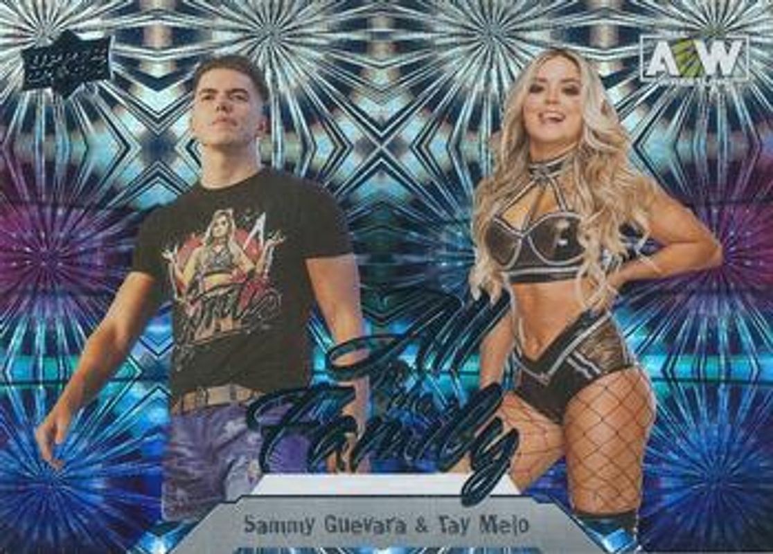 The Tay Melo 2023 Upper Deck AEW #98 Pyro card is 1 of 51 Tay Melo's card variations in the 2023 Upper Deck AEW set being tracked by Sports Card Investor, including #98 Base, #57 Base, #57 Clear Cut, #98 Clear Cut, and #57 Diamond Plate.