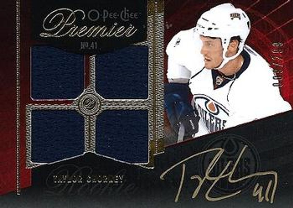 The Taylor Chorney 2009 O-Pee-Chee Premier #92 Base /299 Rookie card is 1 of 3 Taylor Chorney's card variations in the 2009 O-Pee-Chee Premier set being tracked by Sports Card Investor, including Black /10, and Gold Spectrum /10.