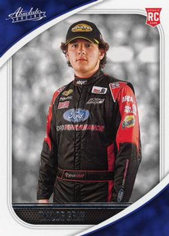 The Taylor Gray 2021 Chronicles NASCAR #20 Absolute Rookie card is 1 of 41 Taylor Gray's card variations in the 2021 Chronicles NASCAR set being tracked by Sports Card Investor, including Absolute Autographs, Crusade, Crusade Autographs, Crusade - Green, and Crusade - Holo.