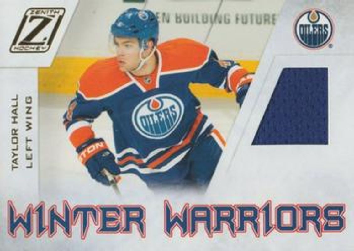 The Taylor Hall 2010 Zenith #TH Winter Warriors Materials Rookie card is 1 of 21 Taylor Hall's card variations in the 2010 Zenith set being tracked by Sports Card Investor, including Base /999, Epix, Rookie Roll Call, Rookie Roll Call Jerseys, and Rookie Roll Call Jerseys Patches.