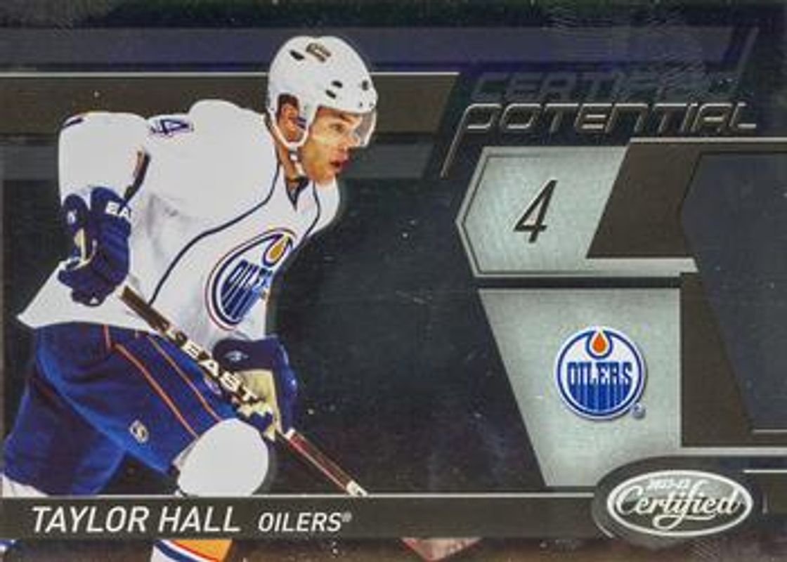 The Taylor Hall 2011 Certified #1 Potential card is 1 of 44 Taylor Hall's card variations in the 2011 Certified set being tracked by Sports Card Investor, including Base /499, Totally Silver, Mirror Red /199, Mirror Red Materials Dual /150, and Mirror Blue /99.