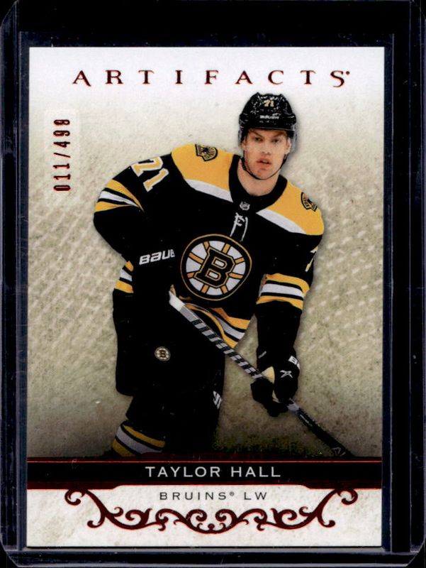 The Taylor Hall 2021 Upper Deck Artifacts #31 Ruby /499 card is 1 of 20 Taylor Hall's card variations in the 2021 Upper Deck Artifacts set being tracked by Sports Card Investor, including Base /999, Neon Green, Rose Gold, Turquoise, and Silver Spectrum /299.