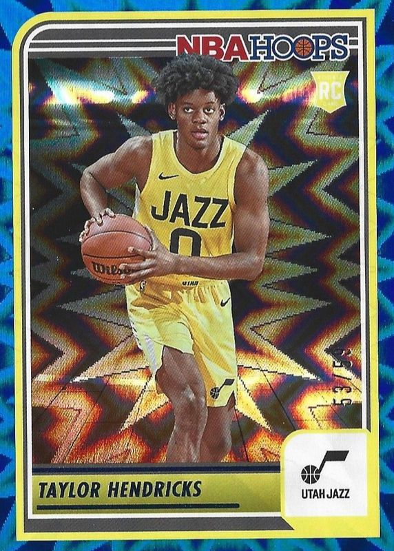 The Taylor Hendricks 2023 Hoops #236 Blue Explosion /59 Rookie card in Raw condition has not changed in price in the last 30 days and was last sold for $9.75 .
