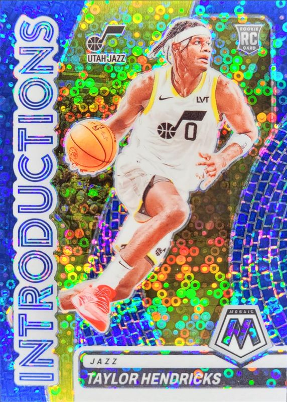 The Taylor Hendricks 2023 Mosaic #11 Introductions - Fast Break Blue /85 Rookie card is 1 of 94 Taylor Hendricks' card variations in the 2023 Mosaic set being tracked by Sports Card Investor, including Base, NBA Debut, Fast Break, Green, and Green Ice.