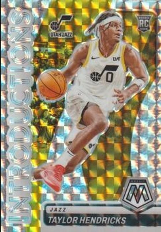 The Taylor Hendricks 2023 Mosaic #11 Introductions - Mosaic Rookie card is 1 of 94 Taylor Hendricks' card variations in the 2023 Mosaic set being tracked by Sports Card Investor, including Base, NBA Debut, Fast Break, Green, and Green Ice.