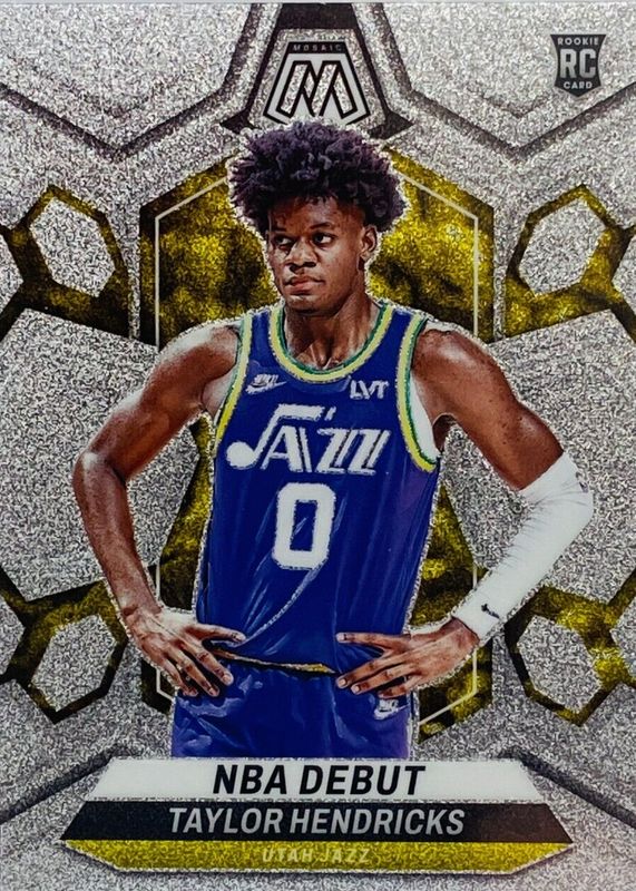 The Taylor Hendricks 2023 Mosaic #261 NBA Debut - Glitter /(SSP) Rookie card in Raw condition has not changed in price in the last 30 days and was last sold for $32.51 .