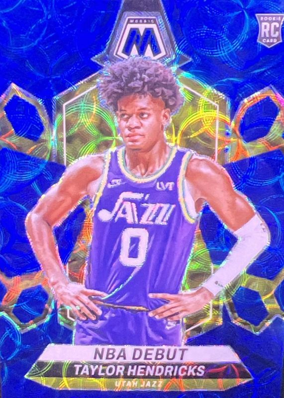 The Taylor Hendricks 2023 Mosaic #261 NBA Debut - International Blue /25 Rookie card in Raw condition has not changed in price in the last 30 days and was last sold for $3.60 .