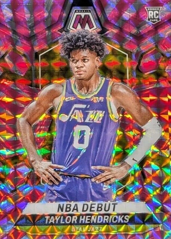 The Taylor Hendricks 2023 Mosaic #261 NBA Debut - Pink Swirl /18 Rookie card in Raw condition has not changed in price in the last 30 days and was last sold for $10.00 .