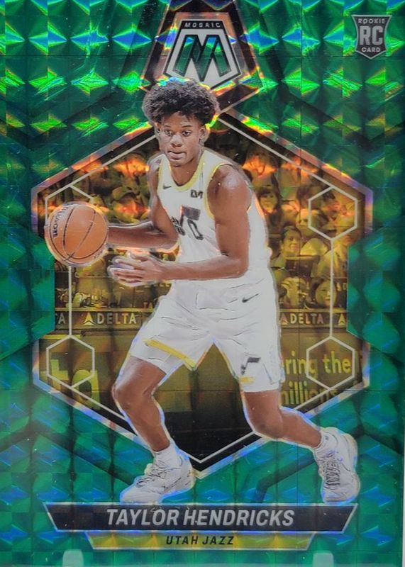 This card is 1 of 82 Taylor Hendricks' card variations in the 2023 Mosaic set being tracked by Sports Card Investor, including Base, NBA Debut, Fast Break, Green, and Green Ice.