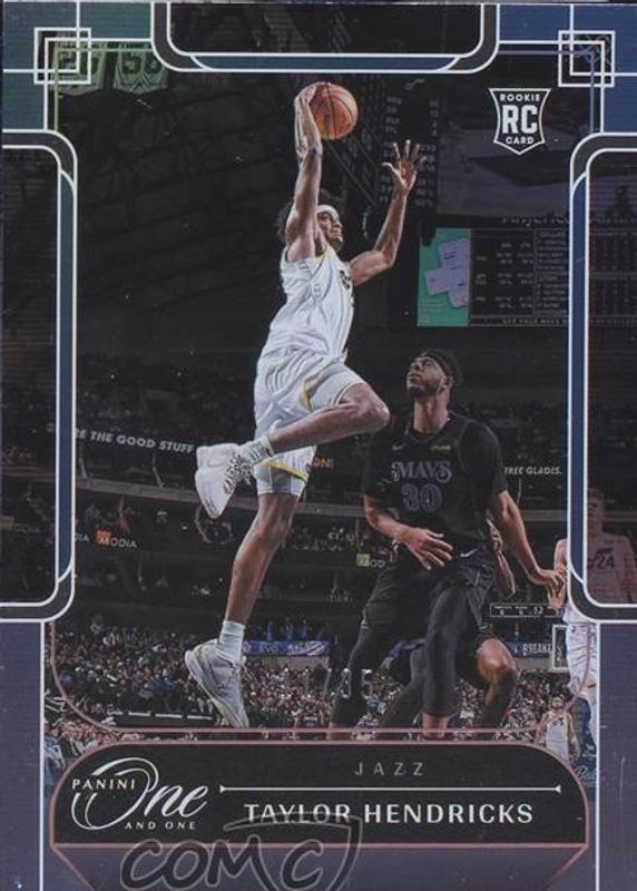 This card is 1 of 8 Taylor Hendricks' card variations in the 2023 One and One set being tracked by Sports Card Investor, including Base /99, Purple /25, Red /15, Gold /10, and White FOTL /7.