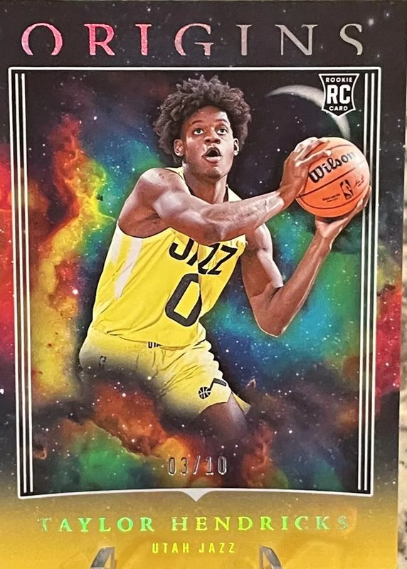 This card is 1 of 38 Taylor Hendricks' card variations in the 2023 Origins set being tracked by Sports Card Investor, including Base, Basketballs, Cosmos, Red, and Tessellated.