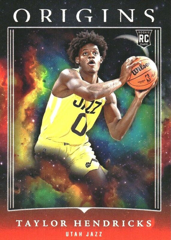 This card is 1 of 38 Taylor Hendricks' card variations in the 2023 Origins set being tracked by Sports Card Investor, including Base, Basketballs, Cosmos, Tessellated, and Maroon /115.