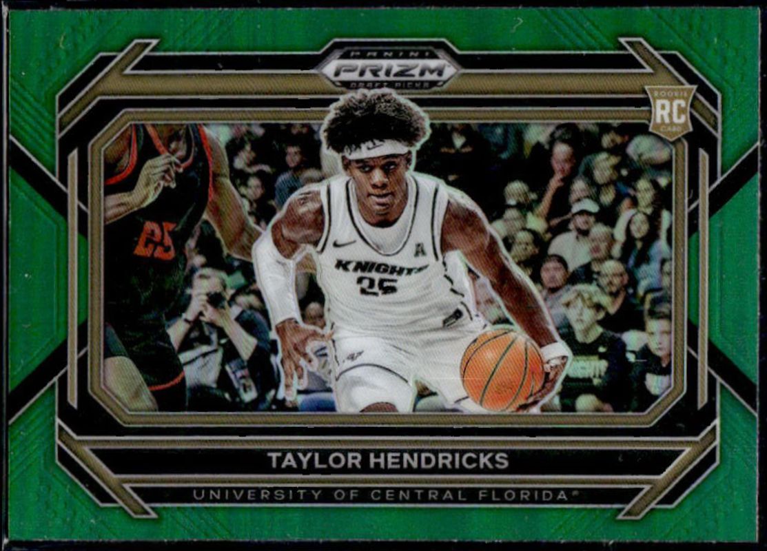 The Taylor Hendricks 2023 Prizm Draft Picks #19b Variation - Green Rookie card is 1 of 124 Taylor Hendricks' card variations in the 2023 Prizm Draft Picks set being tracked by Sports Card Investor, including Base, Variation, Choice Blue Yellow Green, Green, and Green Wave.