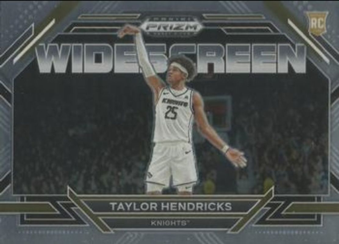 The Taylor Hendricks 2023 Prizm Draft Picks #2 Widescreen Rookie card is 1 of 124 Taylor Hendricks' card variations in the 2023 Prizm Draft Picks set being tracked by Sports Card Investor, including Base, Variation, Choice Blue Yellow Green, Green, and Green Wave.