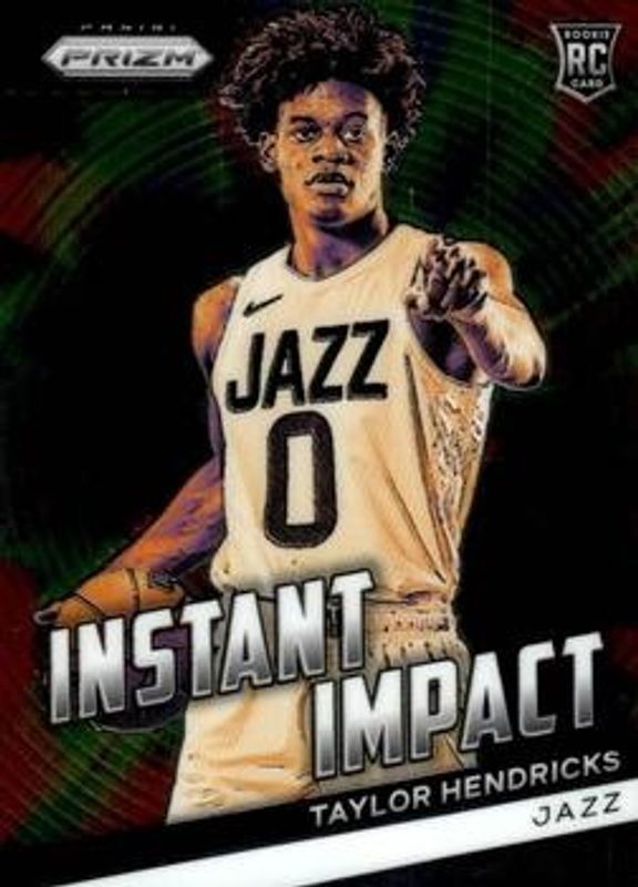 The Taylor Hendricks 2023 Prizm #1 Instant Impact Rookie card is 1 of 82 Taylor Hendricks' card variations in the 2023 Prizm set being tracked by Sports Card Investor, including #161 Base, #161b Base, #161 Blue Wave, #161 Choice Blue Yellow Green, and #161 Fast Break.